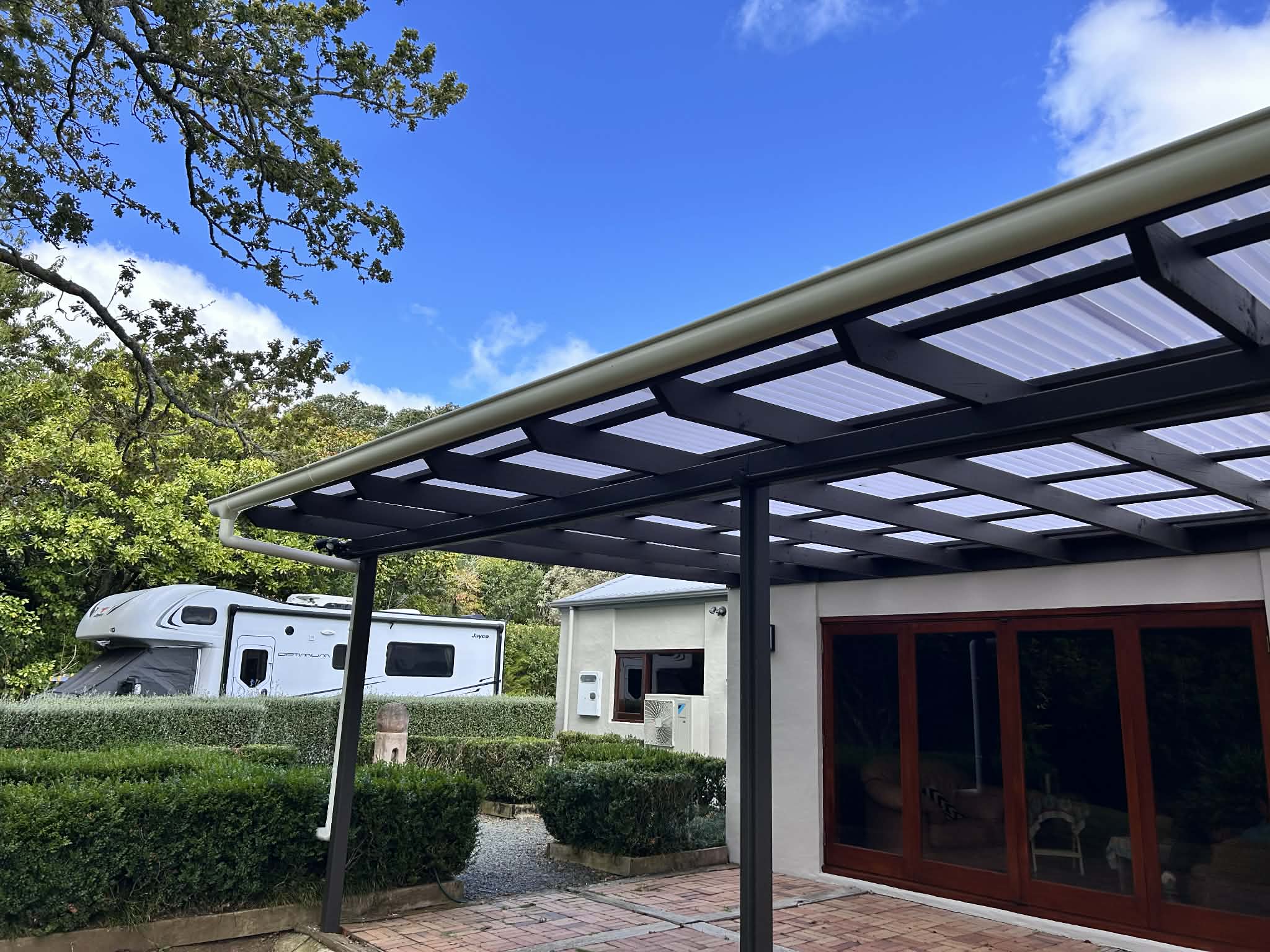 To keep your Polycarbonate and Acrylic roofing clean, we recommend cleaning it regularly using warm soapy water and a soft sponge, we do not recommend water blasting or using any other harsh cleaning chemicals as it can break down the protective U.V layer on Polycarbonate sheeting, these cleaners can also contain chemicals that are harmful to PMMA (Acrylic)