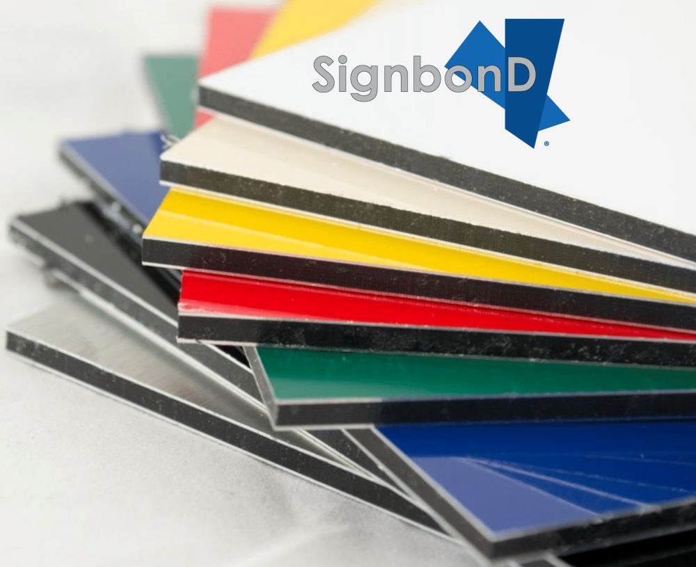 Signbond™ panels consists of two thin aluminium sheets bonded to a low density Polyethylene core. Using a special high-level polyester paint, Signbond™ comes in a variety of colours and is great for exterior signage, shop fitting, interior design, display stands and advertisement. Signbond™ colours come in gloss finish with a gloss white backing.